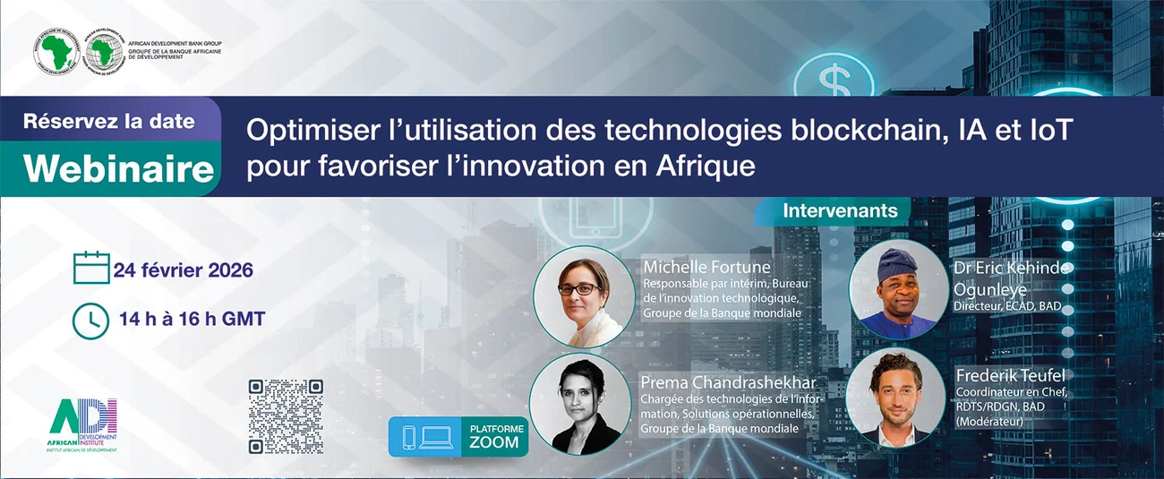 L’Institut africain de développement (ECAD) du Groupe de la Banque africaine de développement organisera une session virtuelle dans le cadre de la série Leading-Edge Insights (LEI) sur le thème « Utiliser la blockchain, ldans le cadre de la série Leading-Edge et l’internet des objets pour stimuler l’innovation en Afrique » le 24 février 2026.