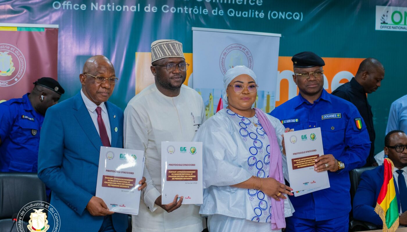 En prélude du mois de Ramadan pour les musulmans et le carême pour les chrétiens, les autorités guinéennes prennent des mesures idoines pour soulager le panier de la ménagère. Dans le souci d’approvisionner le marché guinéen et stabiliser les prix des denrées de première nécessité sur le marché guinéen, le ministère de l’Industrie et du Commerce, à travers la Direction Nationale du Commerce Intérieur et de la Concurrence (DNCIC), a procédé, ce lundi 16 février à la signature d’un protocole d’accord avec la Chambre de Commerce, d’Industrie et d’Artisanat de Guinée (CCIAG) et la Direction Générale des Douanes.
